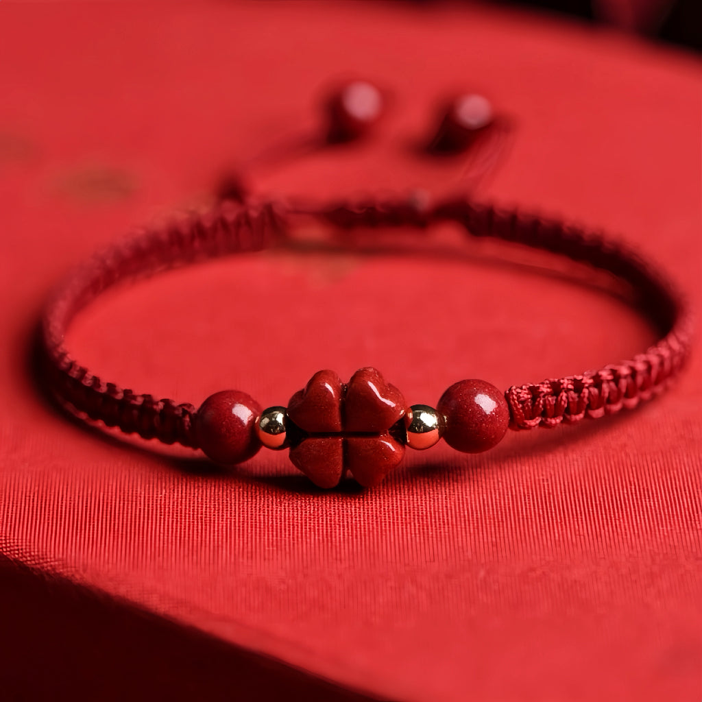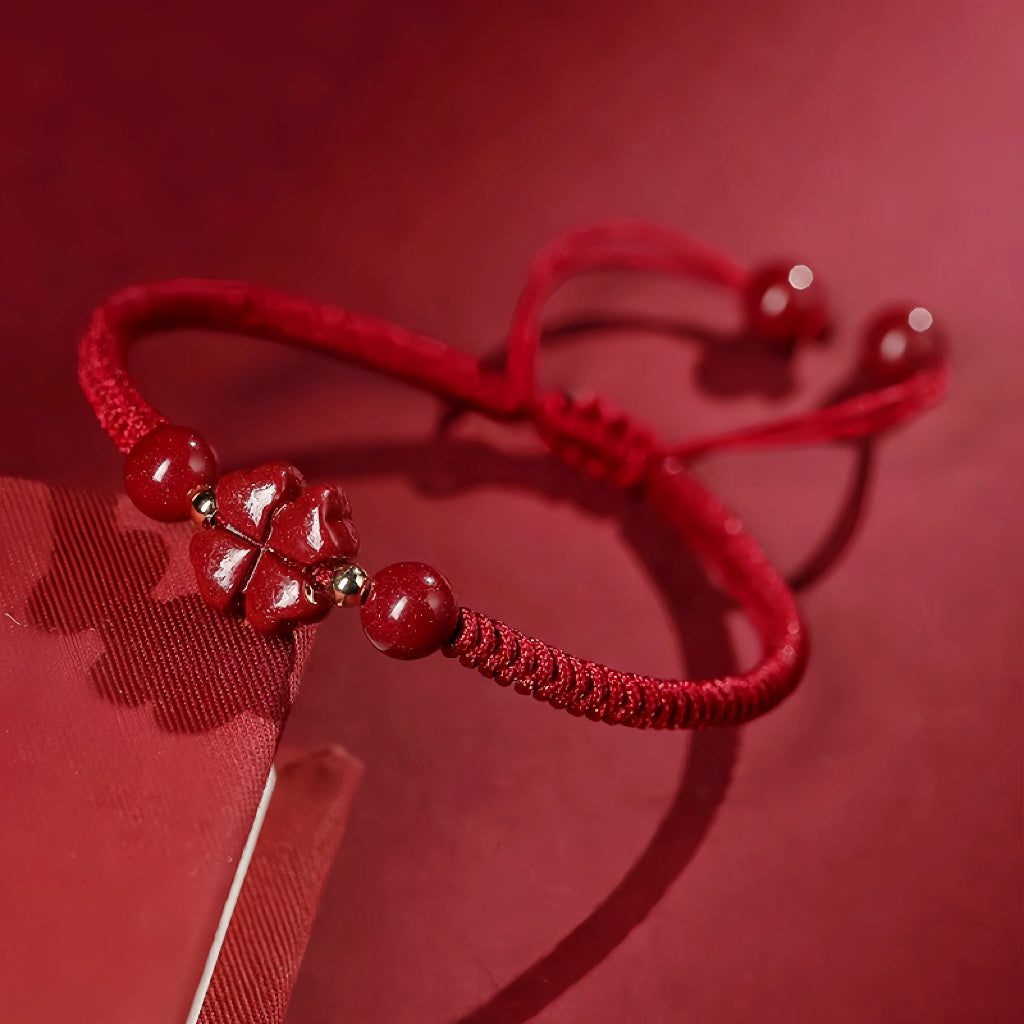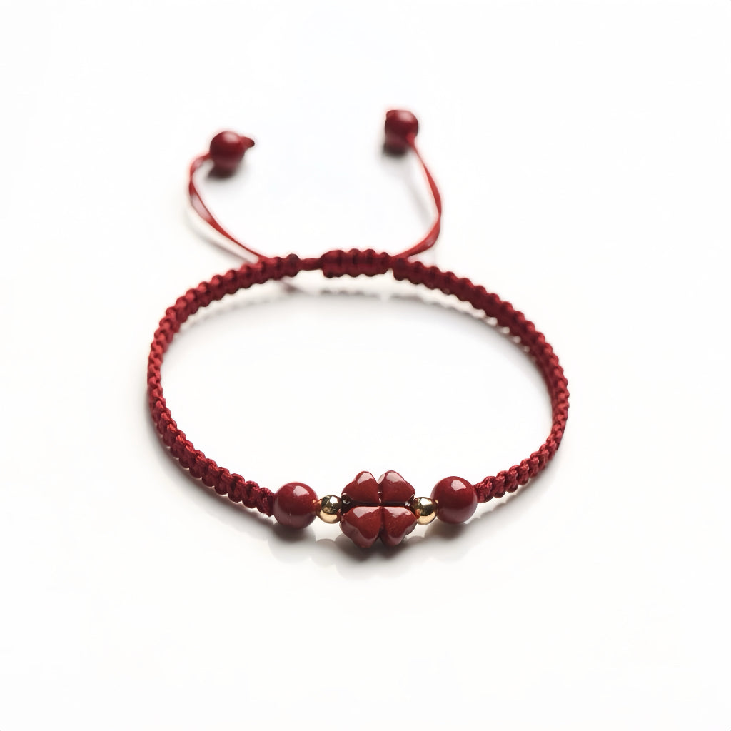 Embrace timeless symbolism and modern elegance with the Cinnabar Four-Leaf Clover Red String Bracelet, a handcrafted talisman blending Eastern mysticism and Western charm.