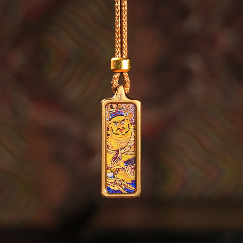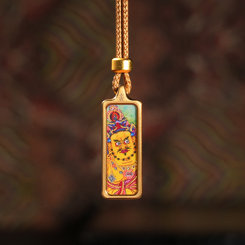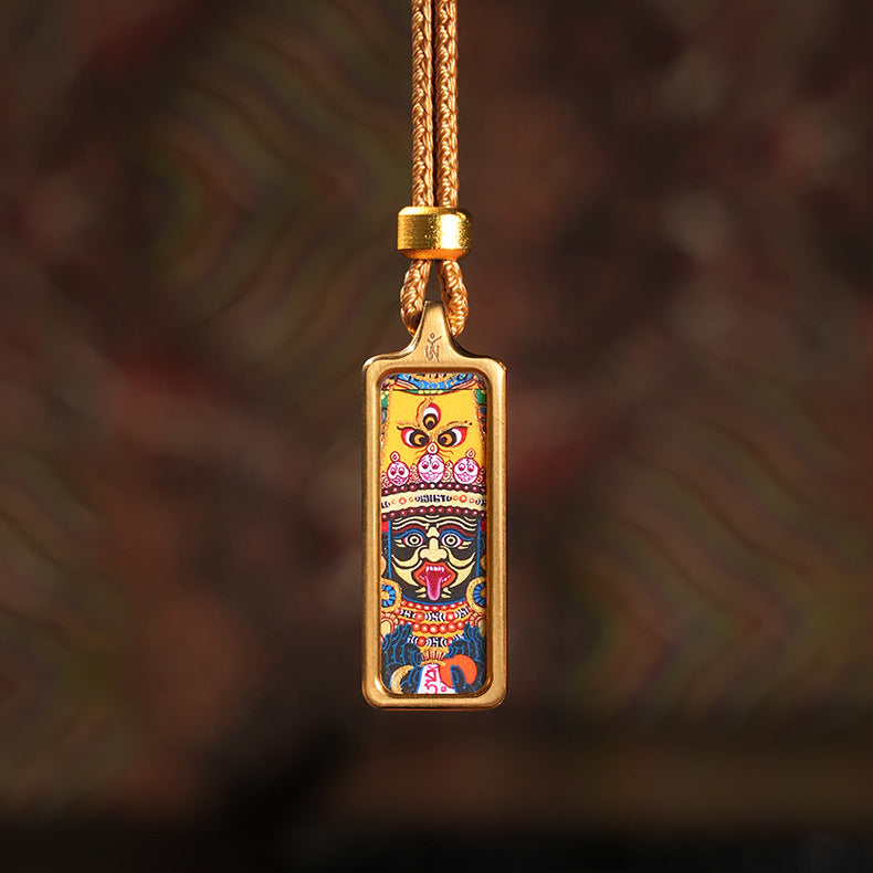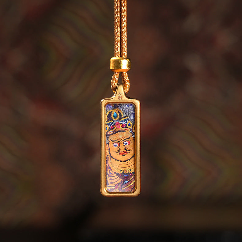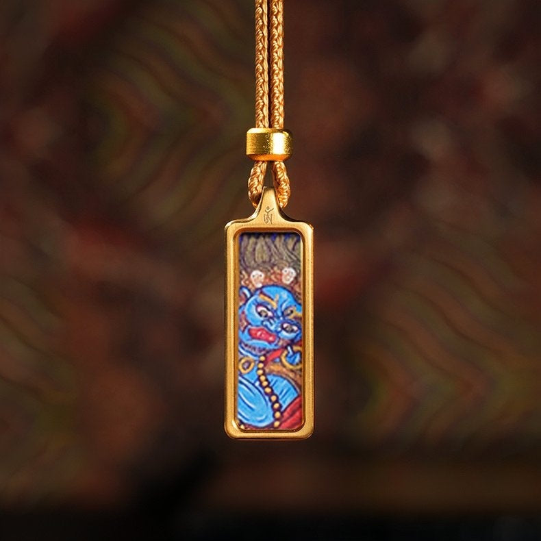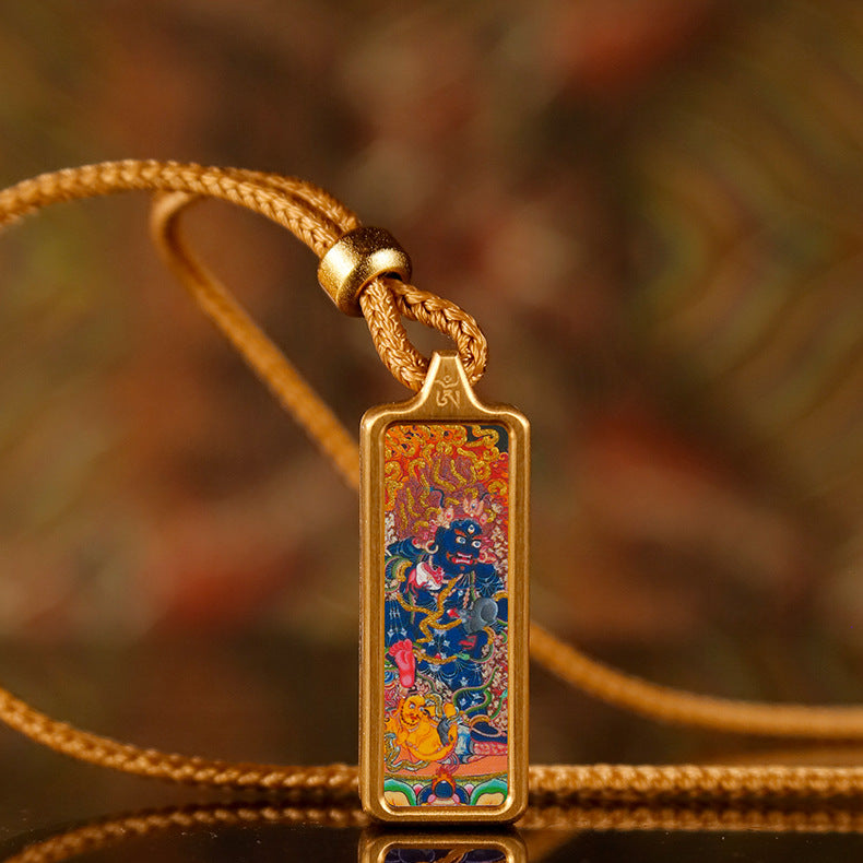 Carry a genuine piece of sacred Himalayan art and the blessings of a powerful protector with you, wherever you go. This exquisite pendant is not a print; it is a wearable shrine, a true miniature Thangka, individually hand-painted by a skilled artist and encased in a protective brass frame.