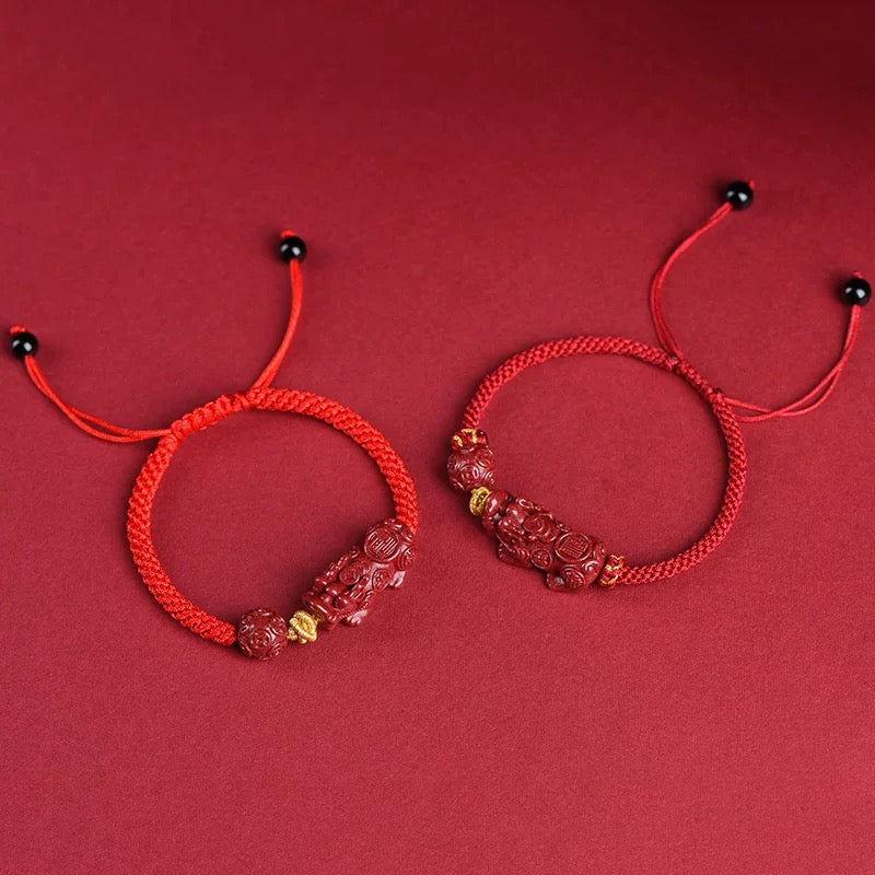 Unique Craftsmanship: Each cinnabar Pixiu charm is hand-carved, making every bracelet one of a kind.
