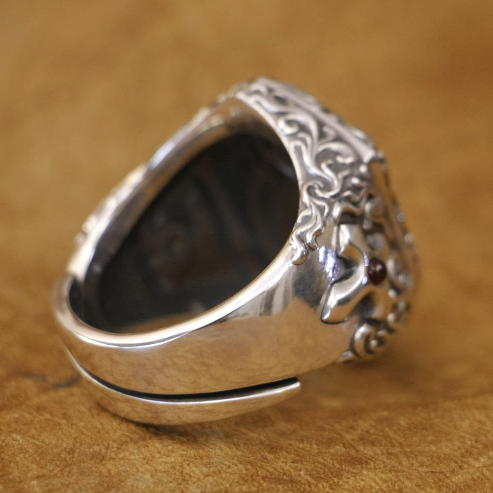 Intricate Sterling Craft, Timeless Vintage Appeal Crafted from 925 sterling silver, every curve and detail of this ring is a testament to masterful craftsmanship. The intricate engravings and textures give it a vintage patina, as if it has journeyed through time. The silver's luster, combined with the rich details, ensures it remains a timeless and eye - catching accessory for those expressing their spiritual journey.